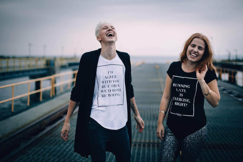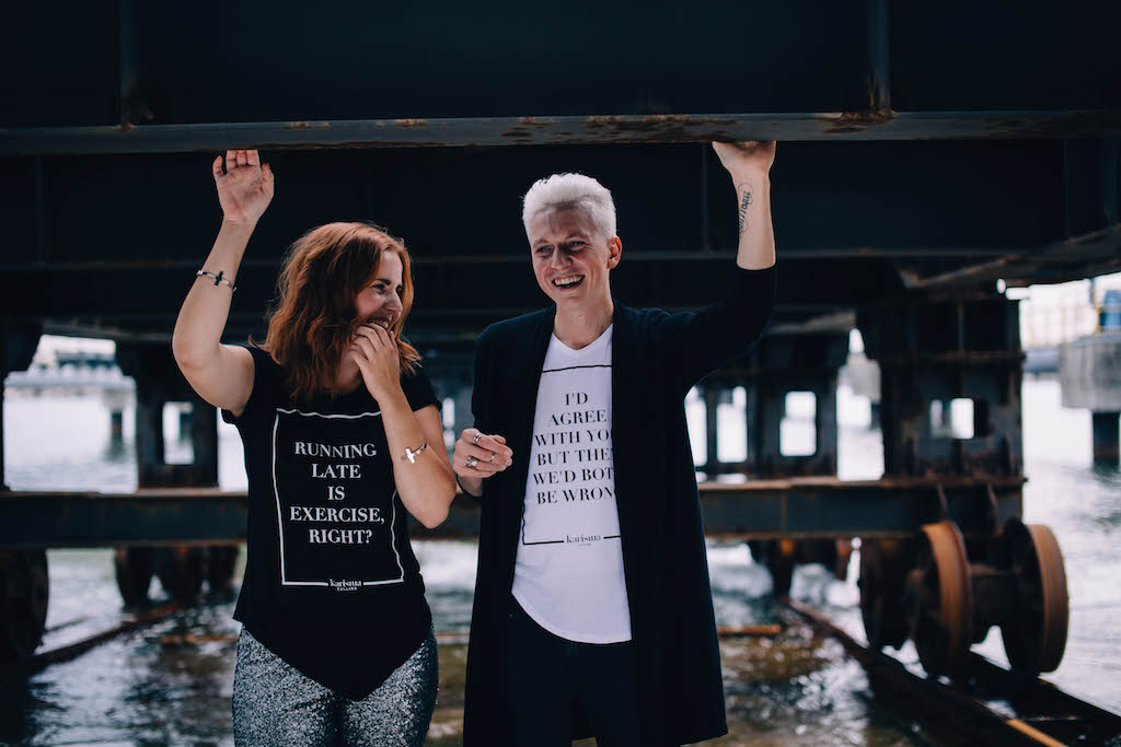 A: Mul seisis aastaid seinal üks lipik, millel oli kirjas “Karisma”, sest tahtsin kunagi välja tulla sellenimelise rõivabrändiga, mis keskenduks just kleitidele, kuna mul oli üllatavalt keeruline endale esinemiskleite leida. See oleks nö kaks kärbest ühe hoobiga olnud. Siis hakkasin aga mõtlema, et äge oleks kõige otsesemas mõttes kanda midagi, millega saad välja öelda mida mõtled, ehk siis mitte teha moega statementi vaid ühendada sõnad ja mood. Kuidagi kujunes see mõte t-särkideks ja täiesti juhuslikult oli Taavi umbes samu mõtteid mõlgutanud ja nii see nimi meie t-särgibrändile ka üle kandus. Karisma tuleneb aga selle sõna otsesest tähendusest – osutada kandjale mõju- ja sisendusjõudu.